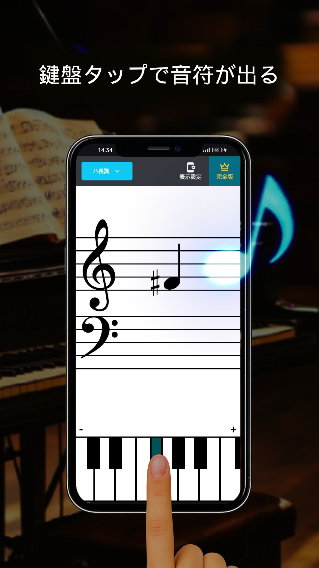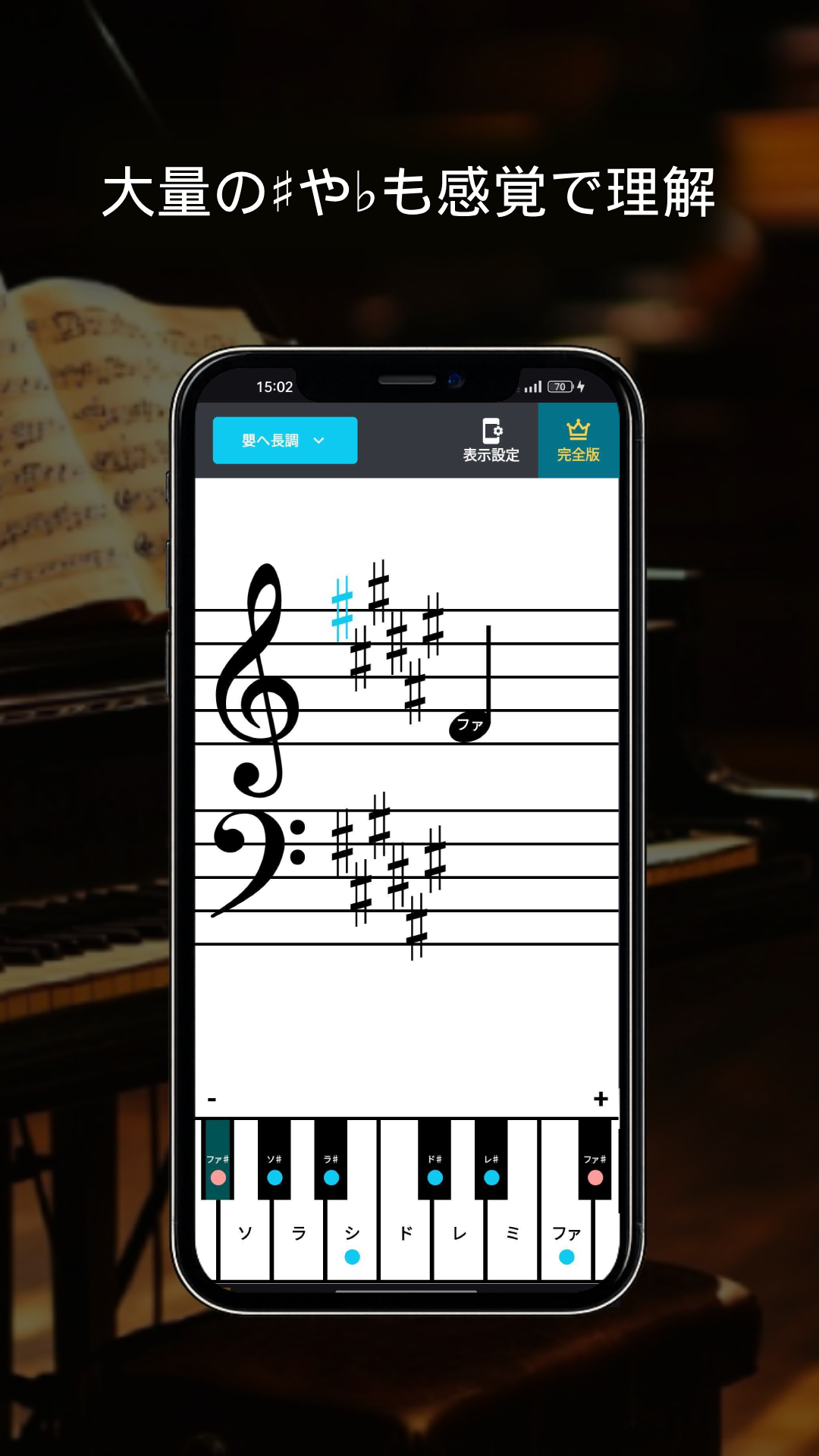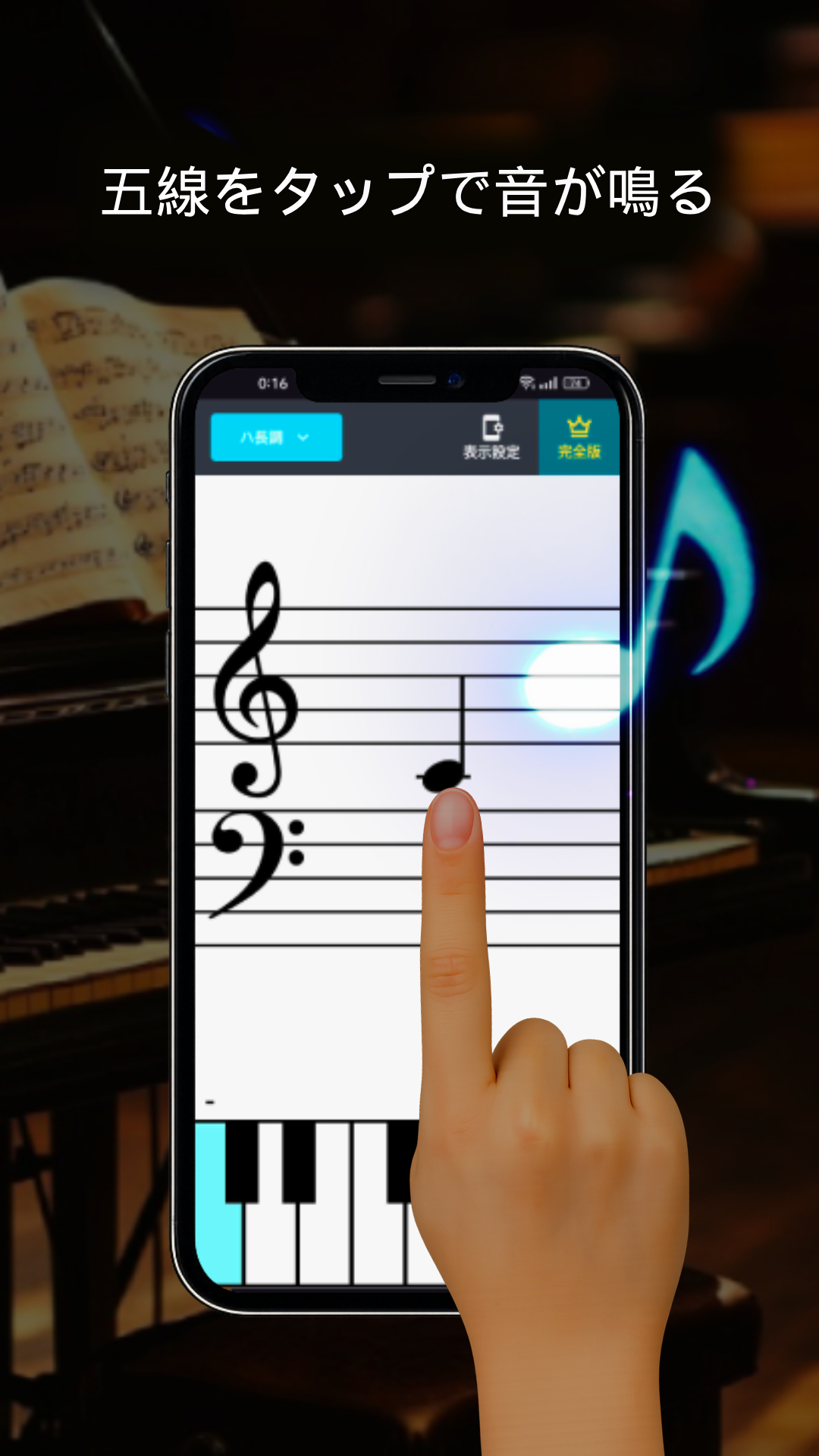 まだ言葉が出ないお子様でも楽しめるくらい、直感的なインターフェース。それでいて、全26調に対応など、難易度の高い読譜の訓練にもステップアップできます。